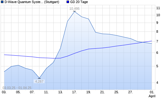 Mit dem Rücksetzer auf 6,93 EUR hat die D-Wave Quantum-Aktie am 31.03.2025 die 20-Tage-Linie nach unten gekreuzt.