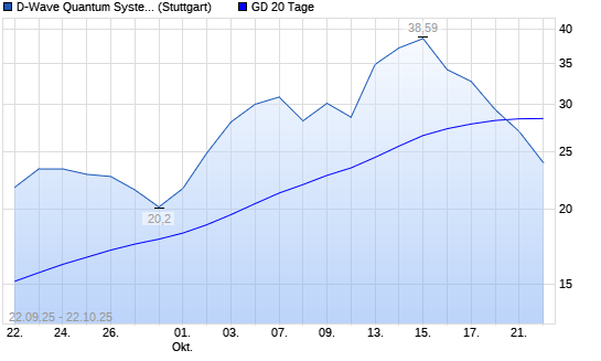 Mit dem Rücksetzer auf 26,96 EUR hat die D-Wave Quantum-Aktie am 21.10.2025 die 20-Tage-Linie nach unten gekreuzt.