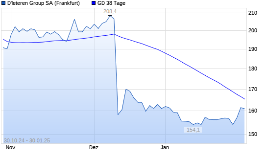 Mit dem Anstieg auf 161,50 EUR hat die D'ieteren-Aktie am 29.01.2025 die 38-Tage-Linie nach oben gekreuzt.
