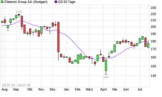 Mit dem Anstieg auf 180,30 EUR hat die D'ieteren-Aktie am 24.07.2025 die 50-Tage-Linie nach oben gekreuzt.
