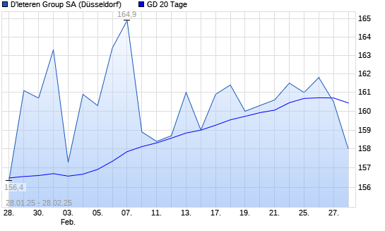 Mit dem Rücksetzer auf 160,60 EUR hat die D'ieteren-Aktie am 27.02.2025 die 20-Tage-Linie nach unten gekreuzt.
