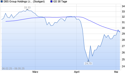 Die DBS Group-Aktie befindet sich seit dem 02.05.2025 im langfristigen Aufwärtstrend und hat in diesem Zeitraum +1,96% an Wert gewonnen. Der Abstand zur 200-Tage-Linie beträgt aktuell +1,87%.