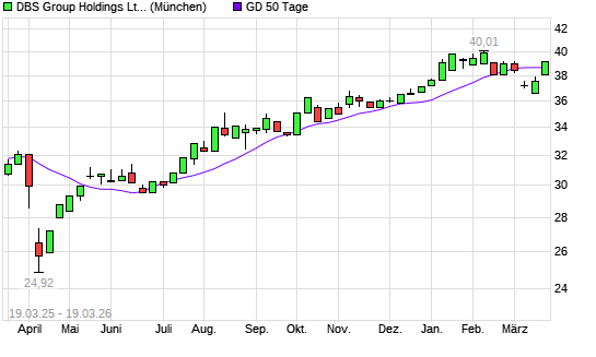 Mit dem Anstieg auf 39,01 EUR hat die DBS Group-Aktie am 18.03.2026 die 50-Tage-Linie nach oben gekreuzt.