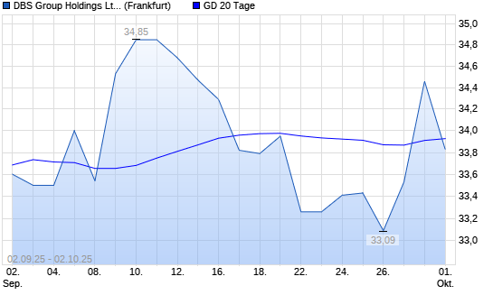 Mit dem Rücksetzer auf 33,83 EUR hat die DBS Group-Aktie am 01.10.2025 die 20-Tage-Linie nach unten gekreuzt.