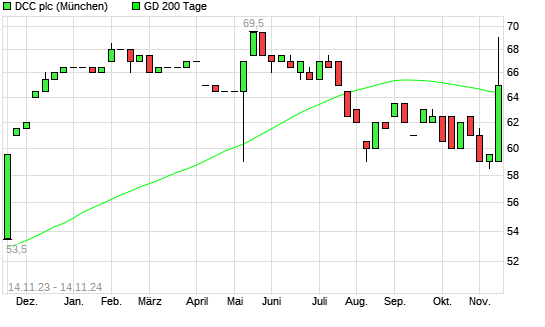 Mit dem Anstieg auf 67,00 EUR hat die DCC-Aktie am 13.11.2024 die 200-Tage-Linie nach oben gekreuzt.