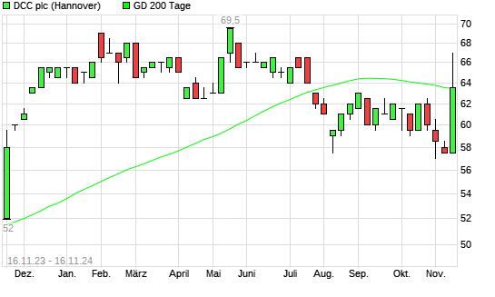 Mit dem Anstieg auf 64,50 EUR hat die DCC-Aktie am 15.11.2024 die 200-Tage-Linie nach oben gekreuzt.
