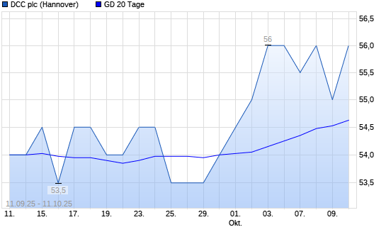 Mit dem Rücksetzer auf 54,50 EUR hat die DCC-Aktie am 10.10.2025 die 20-Tage-Linie nach unten gekreuzt.
