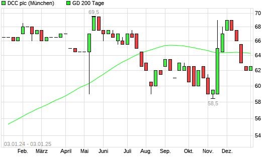 Mit dem Rücksetzer auf 61,00 EUR hat die DCC-Aktie am 02.01.2025 die 200-Tage-Linie nach unten gekreuzt.