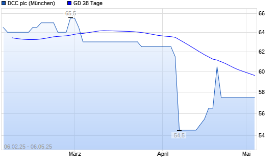Mit dem Rücksetzer auf 57,00 EUR hat die DCC-Aktie am 05.05.2025 die 38-Tage-Linie nach unten gekreuzt.