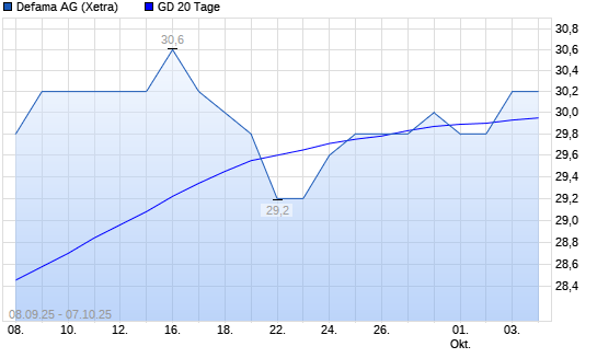 Mit dem Rücksetzer auf 29,60 EUR hat die DEFAMA-Aktie am 06.10.2025 die 20-Tage-Linie nach unten gekreuzt.