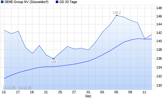 Mit dem Anstieg auf 141,80 EUR hat die DEME Group-Aktie am 12.12.2025 die 20-Tage-Linie nach oben gekreuzt.