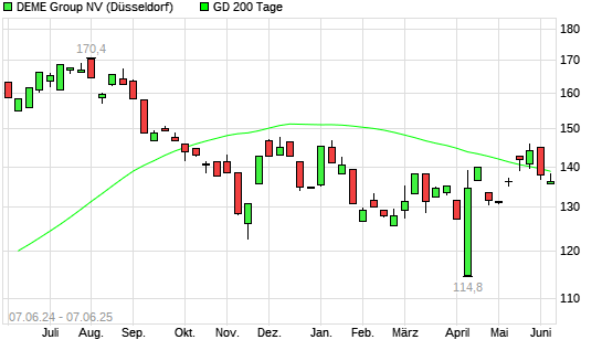 Mit dem Anstieg auf 138,20 EUR hat die DEME Group-Aktie am 06.06.2025 die 200-Tage-Linie nach oben gekreuzt.