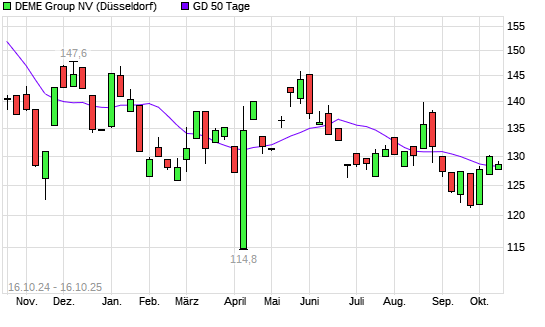 Mit dem Anstieg auf 129,80 EUR hat die DEME Group-Aktie am 15.10.2025 die 50-Tage-Linie nach oben gekreuzt.