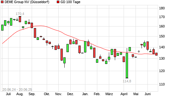Mit dem Rücksetzer auf 133,00 EUR hat die DEME Group-Aktie am 19.06.2025 die 100-Tage-Linie nach unten gekreuzt.