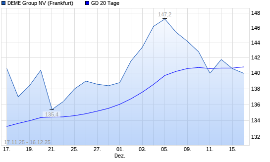 Mit dem Rücksetzer auf 140,60 EUR hat die DEME Group-Aktie am 15.12.2025 die 20-Tage-Linie nach unten gekreuzt.