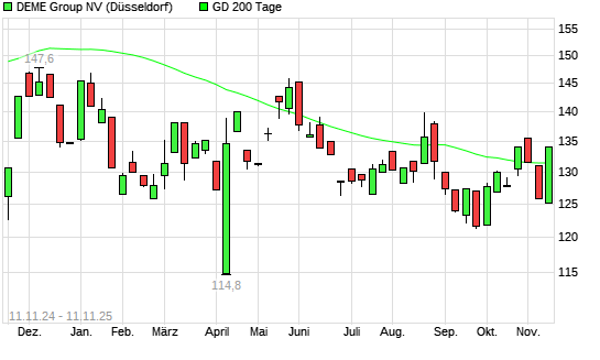 Mit dem Anstieg auf 134,80 EUR hat die DEME Group-Aktie am 10.11.2025 die 200-Tage-Linie nach oben gekreuzt.Die DEME Group-Aktie befand sich seit dem 31.10.2025 im langfristigen Abwärtstrend ...weiterlesen