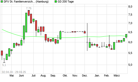 Mit dem Anstieg auf 6,40 EUR hat die DFV Deutsche Familienversicherung-Aktie am 28.03.2025 die 200-Tage-Linie nach oben gekreuzt.