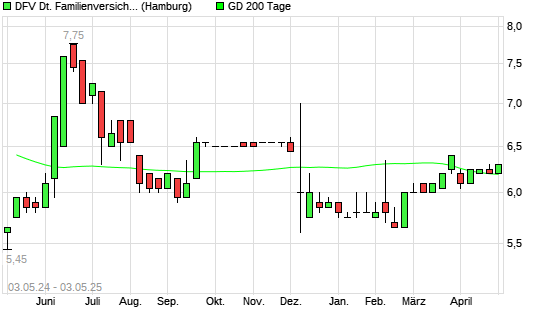 Mit dem Anstieg auf 6,30 EUR hat die DFV Deutsche Familienversicherung-Aktie am 02.05.2025 die 200-Tage-Linie nach oben gekreuzt.