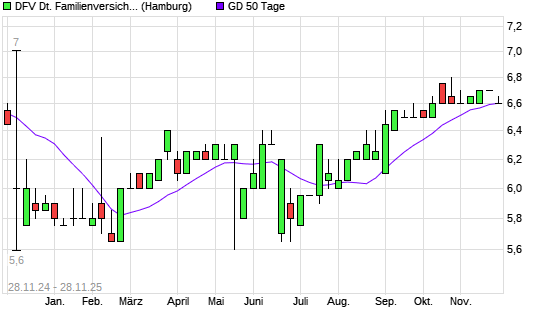 Mit dem Rücksetzer auf 6,60 EUR hat die DFV Deutsche Familienversicherung-Aktie am 27.11.2025 die 50-Tage-Linie nach unten gekreuzt.