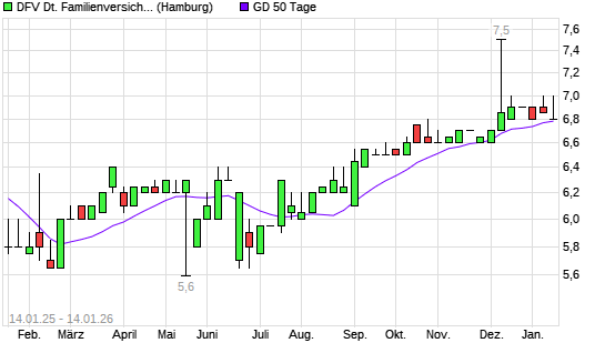 Mit dem Rücksetzer auf 6,80 EUR hat die DFV Deutsche Familienversicherung-Aktie am 13.01.2026 die 50-Tage-Linie nach unten gekreuzt.