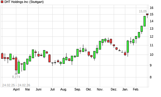 Mit dem Anstieg auf 14,97 EUR hat die DHT Holdings-Aktie (ISIN MHY2065G1219) am 23.02.2026 ein neues 10-Jahres-Hoch erreicht und damit den Kurs vom 20.02.2026 eingestellt.Die ...weiterlesen