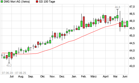 Mit dem Anstieg auf 45,80 EUR hat die DMG Mori-Aktie am 06.06.2025 die 100-Tage-Linie nach oben gekreuzt.