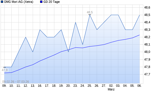Mit dem Anstieg auf 48,20 EUR hat die DMG Mori-Aktie am 06.03.2026 die 20-Tage-Linie nach oben gekreuzt.