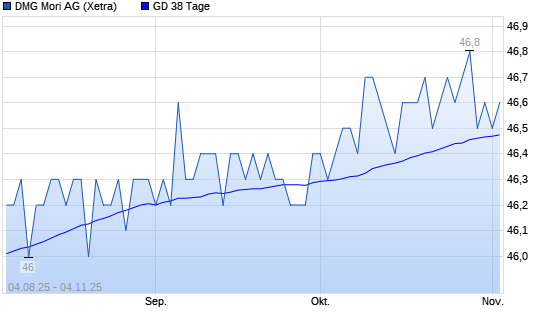 Mit dem Anstieg auf 46,60 EUR hat die DMG Mori-Aktie am 03.11.2025 die 38-Tage-Linie nach oben gekreuzt.
