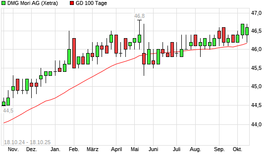 Mit dem Rücksetzer auf 45,90 EUR hat die DMG Mori-Aktie am 17.10.2025 die 100-Tage-Linie nach unten gekreuzt.