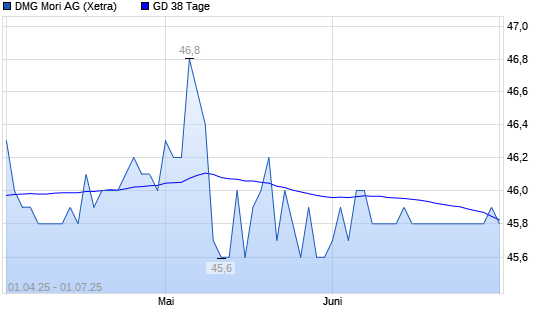 Mit dem Rücksetzer auf 45,60 EUR hat die DMG Mori-Aktie am 30.06.2025 die 38-Tage-Linie nach unten gekreuzt.