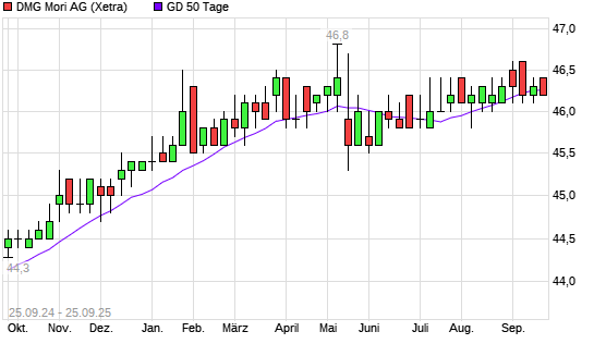 Mit dem Rücksetzer auf 46,00 EUR hat die DMG Mori-Aktie am 24.09.2025 die 50-Tage-Linie nach unten gekreuzt.