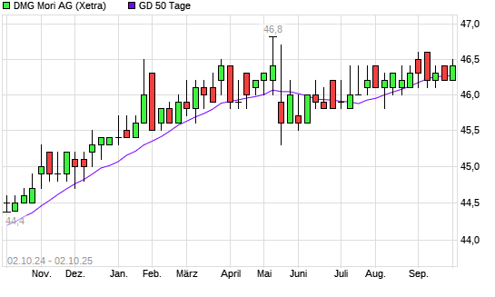 Mit dem Anstieg auf 46,10 EUR hat die DMG Mori-Aktie am 01.10.2025 die 50-Tage-Linie nach oben gekreuzt.Die DMG Mori-Aktie befindet sich seit dem 06.08.2024 im langfristigen Aufwärtstrend und ...weiterlesen