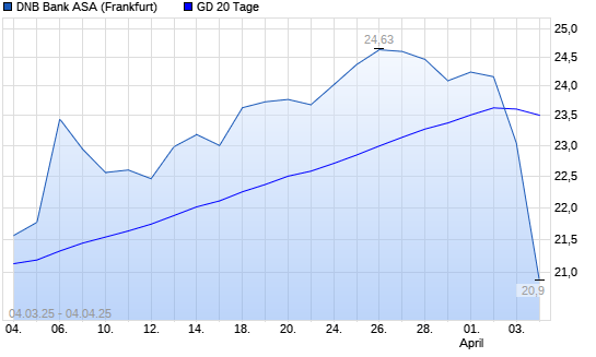 Mit dem Rücksetzer auf 23,04 EUR hat die DNB Bank ASA-Aktie am 03.04.2025 die 20-Tage-Linie nach unten gekreuzt.