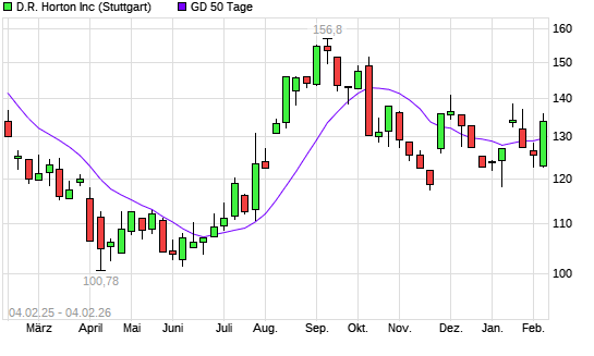 Mit dem Anstieg auf 129,68 EUR hat die D.R. Horton-Aktie am 03.02.2026 die 50-Tage-Linie nach oben gekreuzt.