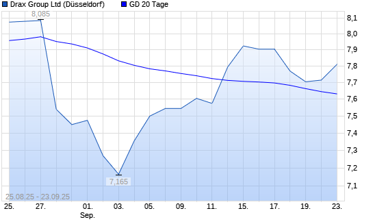 Mit dem Anstieg auf 7,73 EUR hat die DRAX GROUP-Aktie am 22.09.2025 die 20-Tage-Linie nach oben gekreuzt.