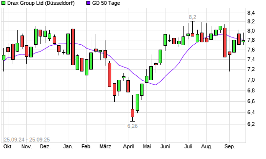 Mit dem Anstieg auf 7,92 EUR hat die DRAX GROUP-Aktie am 24.09.2025 die 50-Tage-Linie nach oben gekreuzt.
