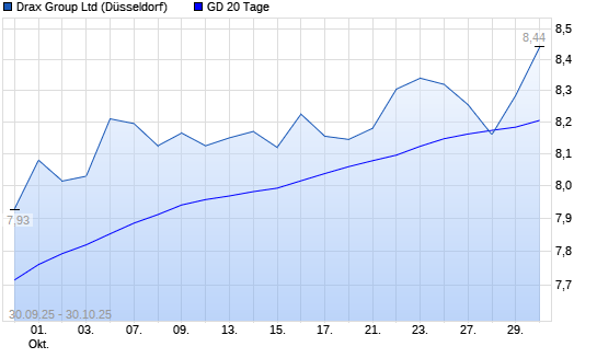Mit dem Rücksetzer auf 8,20 EUR hat die DRAX GROUP-Aktie am 29.10.2025 die 20-Tage-Linie nach unten gekreuzt.
