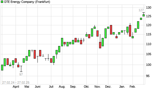 Mit dem Anstieg auf 127,00 EUR hat die DTE Energy Company-Aktie (ISIN US2333311072) am 26.02.2025 ein neues 12-Monats-Hoch erreicht und damit den Kurs vom 25.02.2025 eingestellt.