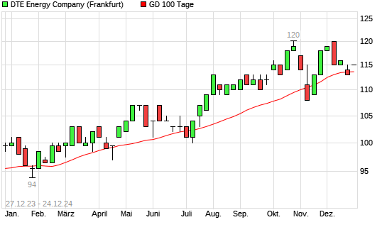 Mit dem Anstieg auf 115,00 EUR hat die DTE Energy Company-Aktie am 23.12.2024 die 100-Tage-Linie nach oben gekreuzt.
