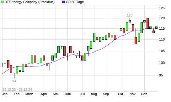 Mit dem Anstieg auf 116,00 EUR hat die DTE Energy Company-Aktie am 27.12.2024 die 50-Tage-Linie nach oben gekreuzt.