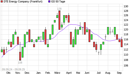 Mit dem Anstieg auf 117,00 EUR hat die DTE Energy Company-Aktie am 08.09.2025 die 50-Tage-Linie nach oben gekreuzt.