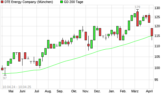 Mit dem Rücksetzer auf 114,00 EUR hat die DTE Energy Company-Aktie am 09.04.2025 die 200-Tage-Linie nach unten gekreuzt.