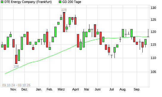 Mit dem Rücksetzer auf 118,00 EUR hat die DTE Energy Company-Aktie am 02.10.2025 die 200-Tage-Linie nach unten gekreuzt.