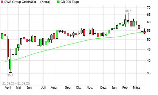 Mit dem Rücksetzer auf 53,35 EUR hat die DWS Group-Aktie am 20.03.2026 die 200-Tage-Linie nach unten gekreuzt.