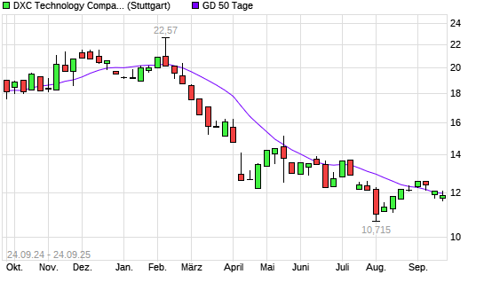 Mit dem Anstieg auf 12,01 EUR hat die DXC Technology-Aktie am 23.09.2025 die 50-Tage-Linie nach oben gekreuzt.