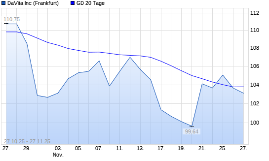 Mit dem Rücksetzer auf 103,65 EUR hat die DaVita-Aktie am 26.11.2025 die 20-Tage-Linie nach unten gekreuzt.
