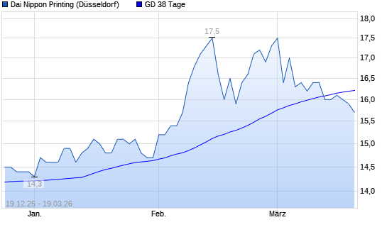 Mit dem Anstieg auf 16,40 EUR hat die Dai Nippon Printing-Aktie am 18.03.2026 die 38-Tage-Linie nach oben gekreuzt.