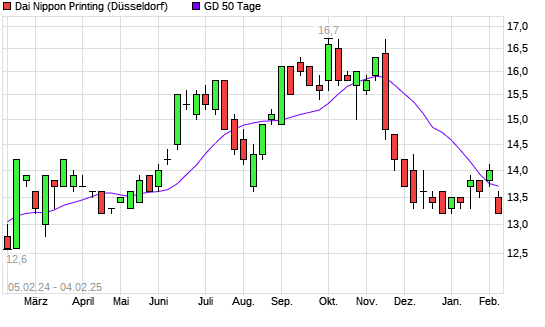 Mit dem Rücksetzer auf 13,60 EUR hat die Dai Nippon Printing-Aktie am 03.02.2025 die 50-Tage-Linie nach unten gekreuzt.
