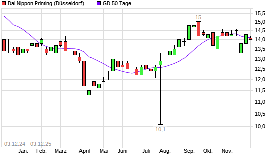 Mit dem Rücksetzer auf 14,10 EUR hat die Dai Nippon Printing-Aktie am 02.12.2025 die 50-Tage-Linie nach unten gekreuzt.