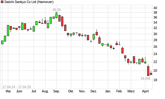 Mit dem Rücksetzer auf 19,12 EUR hat die Daiichi Sankyo-Aktie (ISIN JP3475350009) am 16.04.2025 ein neues 3-Jahres-Tief erreicht und damit den Kurs vom 11.04.2025 eingestellt.